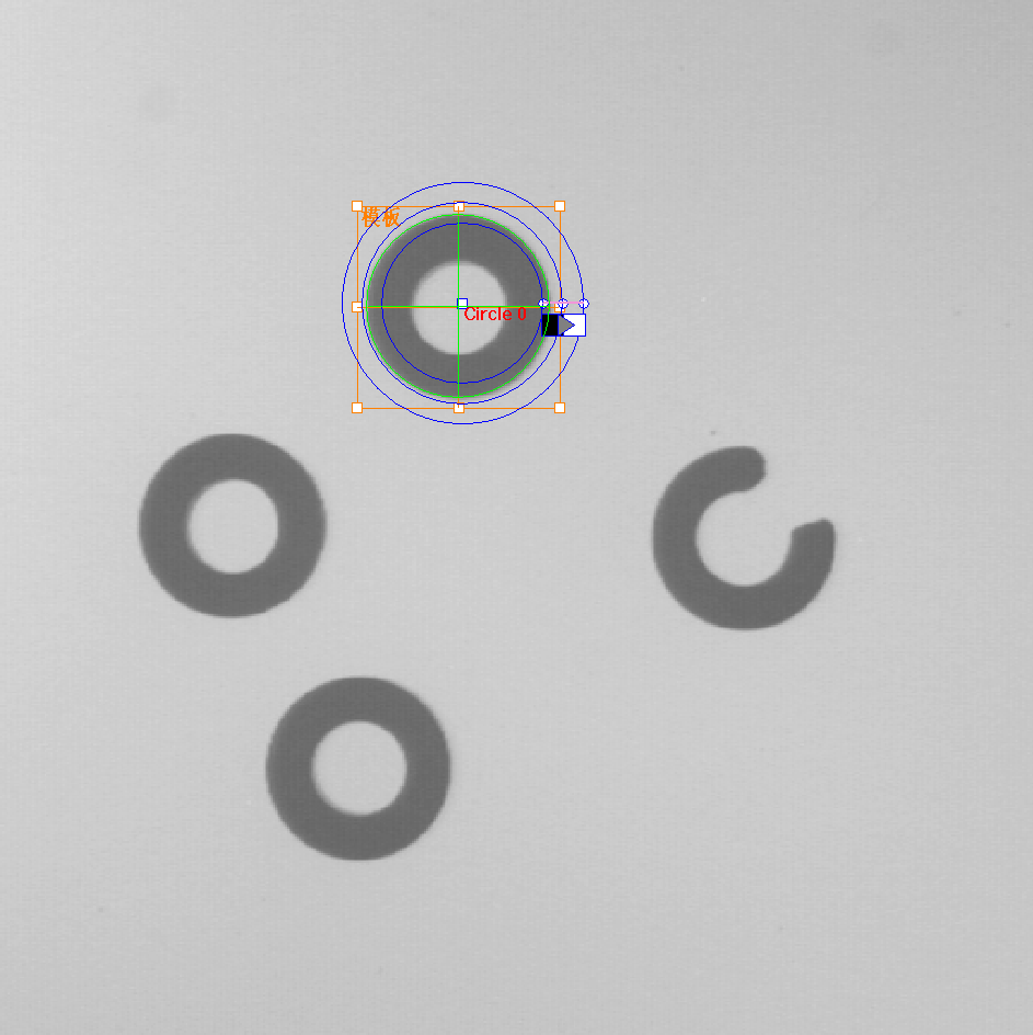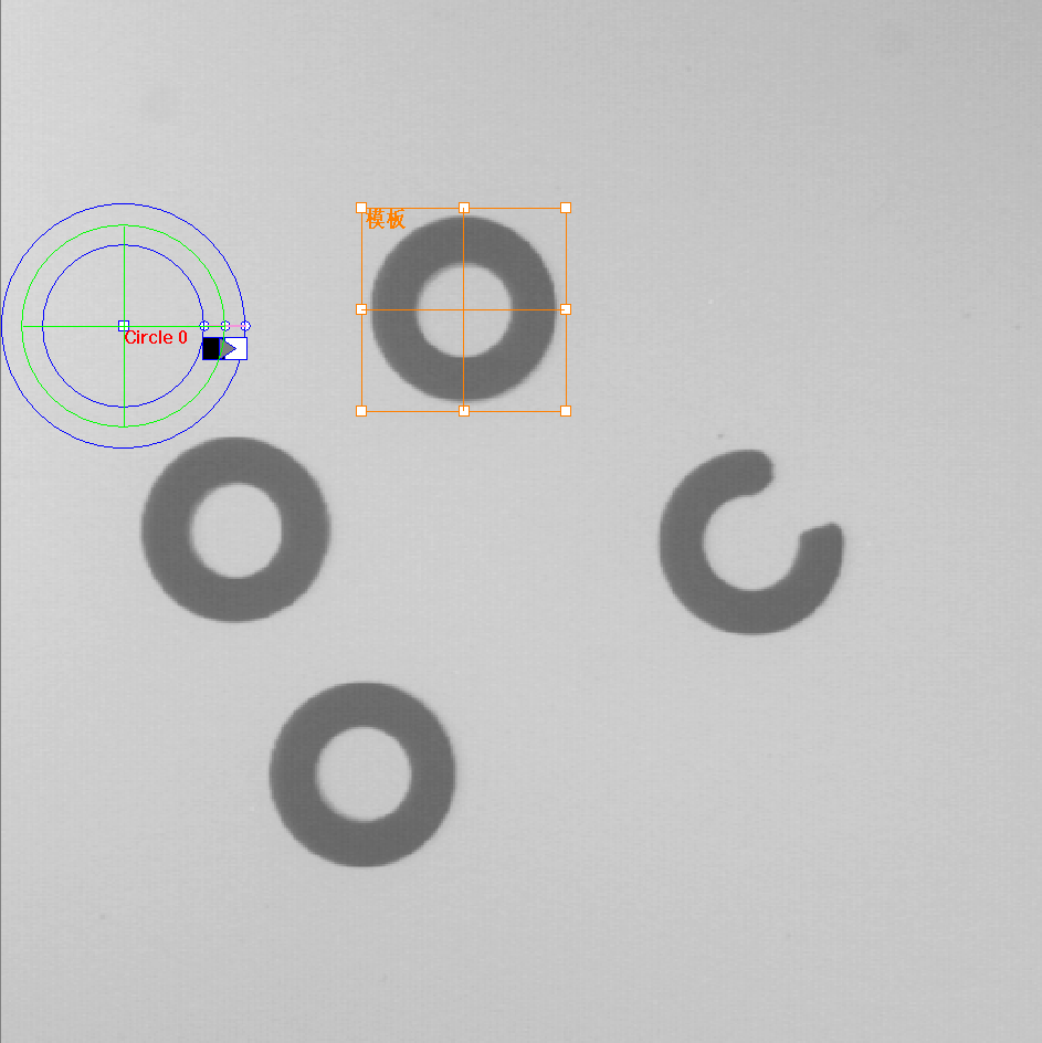 在主處理下拉列表中選擇【灰度匹配+圓心】,在圖像范圍內(nèi)顯示橙色矩形框和圓工具。如果未見,請點擊工具欄上方的【重置控件】。