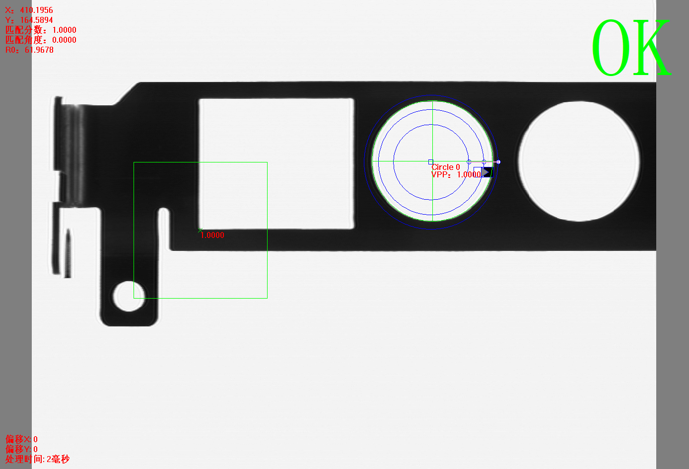 匹配作為粗定位使用,圓工具跟隨粗定位自動改變位置;對于目標比較固定的情況,可不采用粗定位功能。