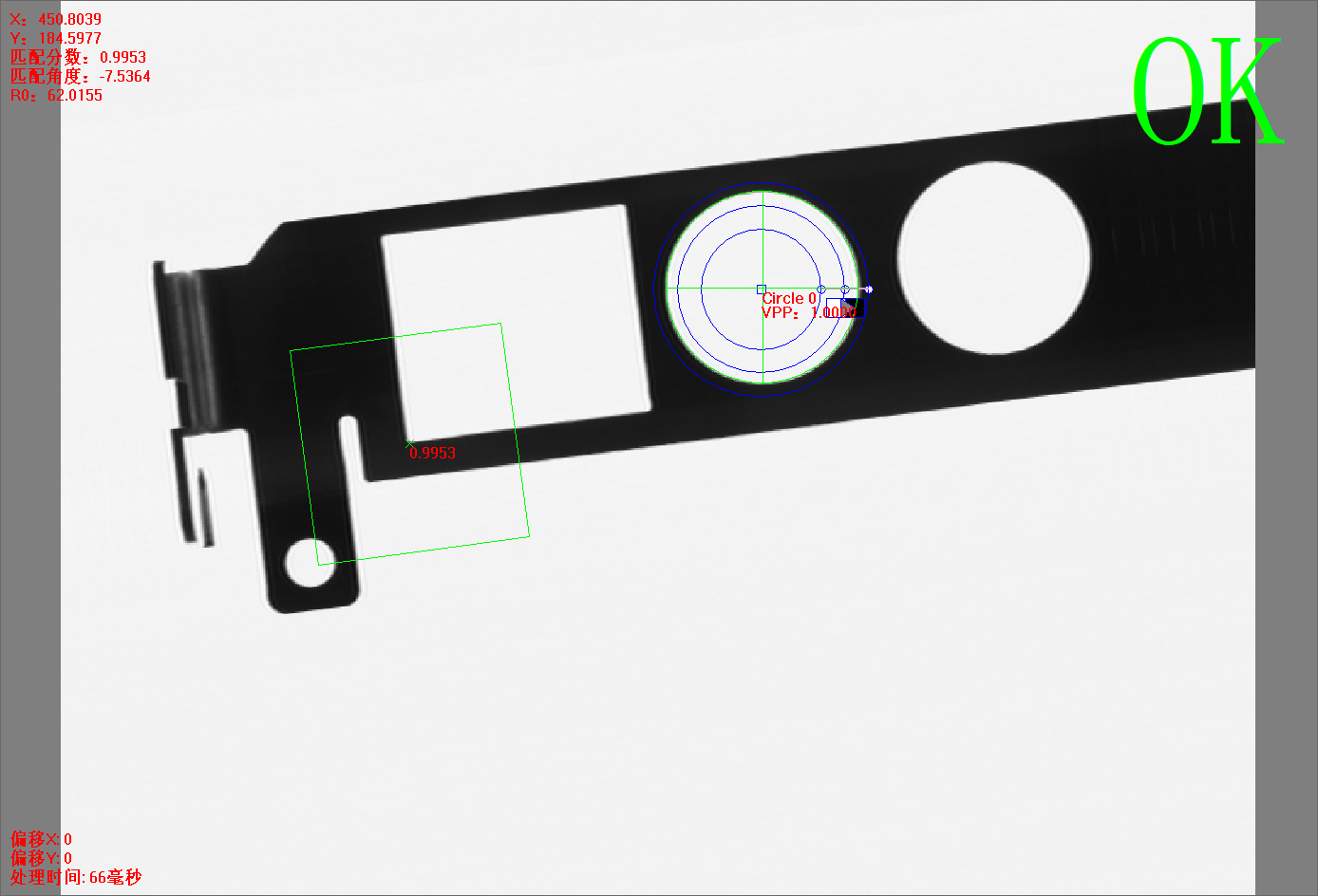 點擊【方法學習】后,灰度匹配+圓心 方法的所有信息將被保存,并自動進行圖像處理,相關(guān)的信息將顯示。