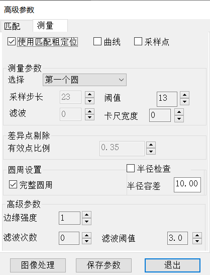 這兩個參數(shù)是組合使用的,它們起到剔除差異點的作用,提高擬合圓的準確性。