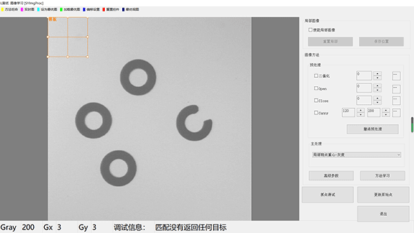 在主處理下拉列表中選擇《局部斑點(diǎn)重心--灰度》,在圖像范圍內(nèi)將出現(xiàn)一個(gè)橙色矩形框。如未見(jiàn)矩形框,可點(diǎn)擊圖像上方工具欄《重置控件》。