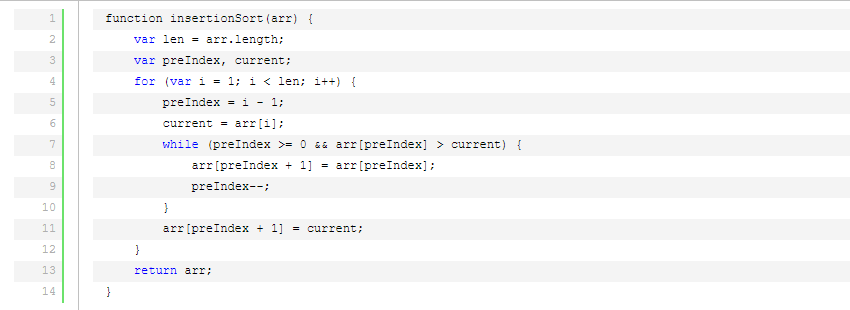 一般來說,插入排序都采用in-place在數(shù)組上實現(xiàn)。具體算法描述如下: