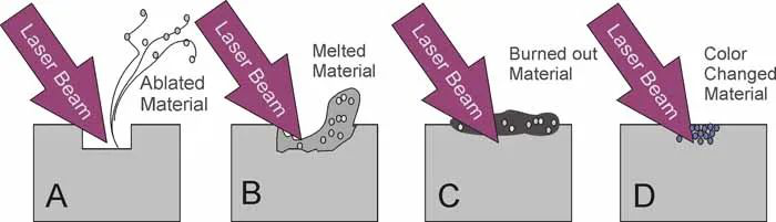 紫外激光器在基板表面留下永久不可磨滅的高分辨率標(biāo)記。要了解這種現(xiàn)象,我們必須考慮激光束如何與材料相互作用。例如,光束可以從表面完全反射,作為來自鏡子的太陽光線,或者作為穿過透明玻璃窗的太陽光線傳播而不受影響。在這些情況下,表面上不會留下任何痕跡。要標(biāo)記材料,必須直接在材料表面或附近吸收至少一部分激光輻射。
