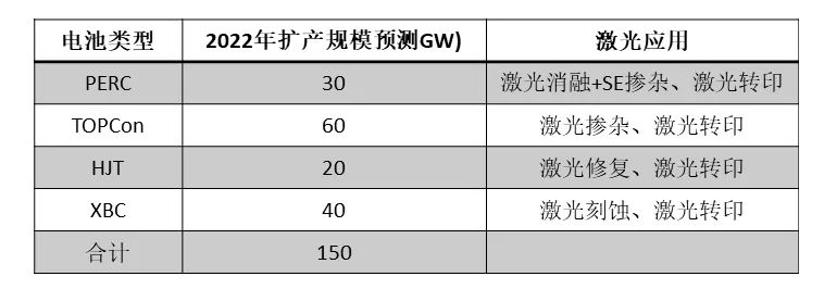 激光在N型電池中的應用包括激光摻雜、激光修復、激光刻蝕、激光轉印等,價值量較PERC時代有望成倍增長,因此N型電池放量也將帶來光伏激光設備市場空間快速擴容。