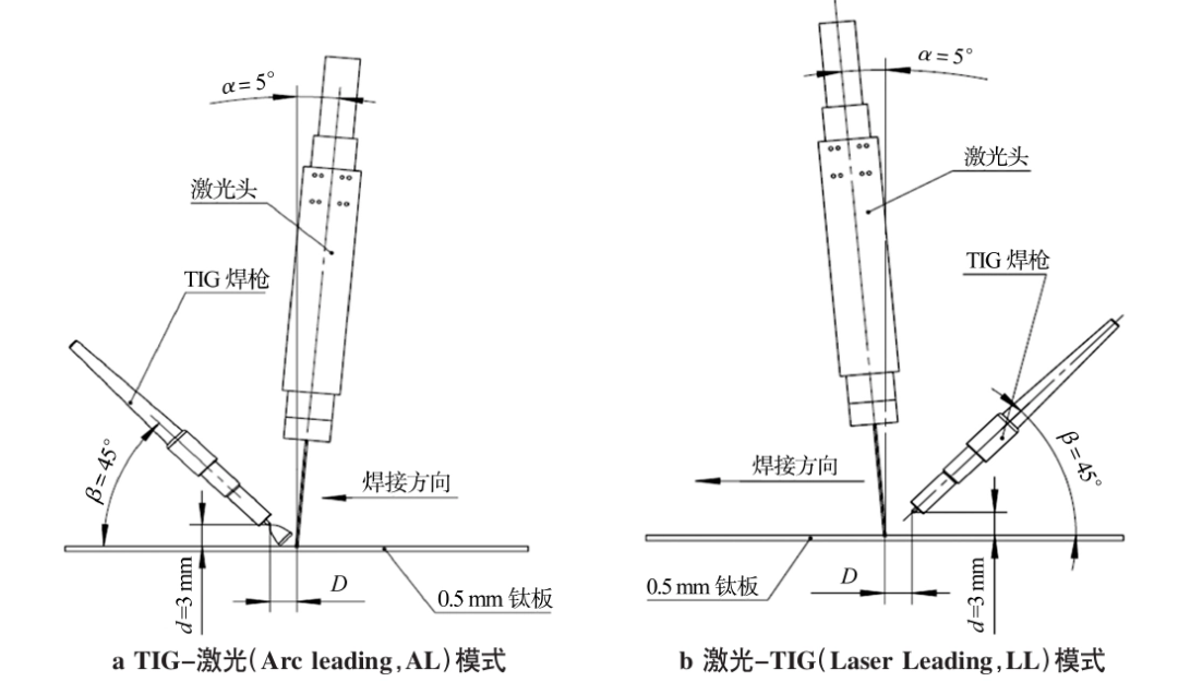 激光與電弧復(fù)合焊接有兩種常見形式:激光-TIG復(fù)合焊接(如下圖)和激光-MIG復(fù)合焊接。