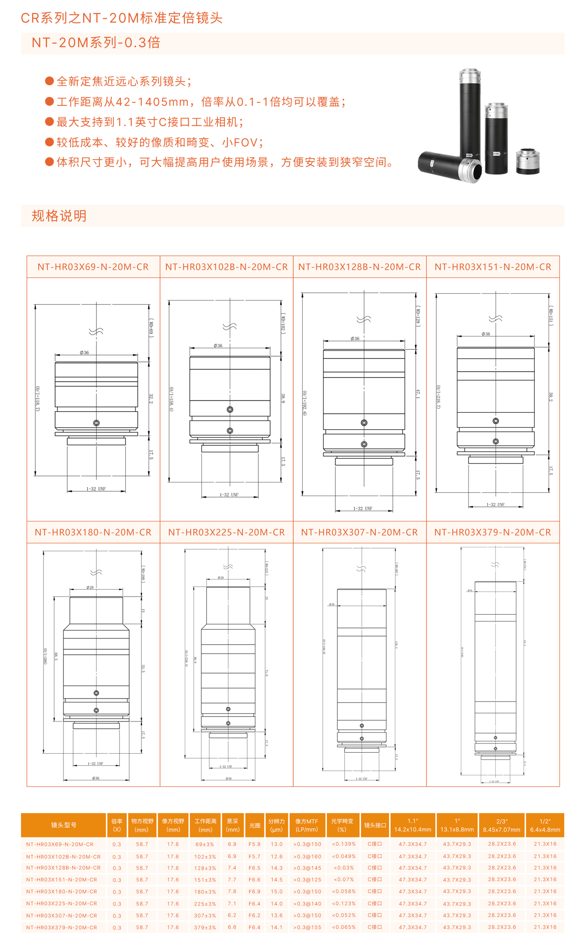 全新定焦近遠(yuǎn)心系列鏡頭;