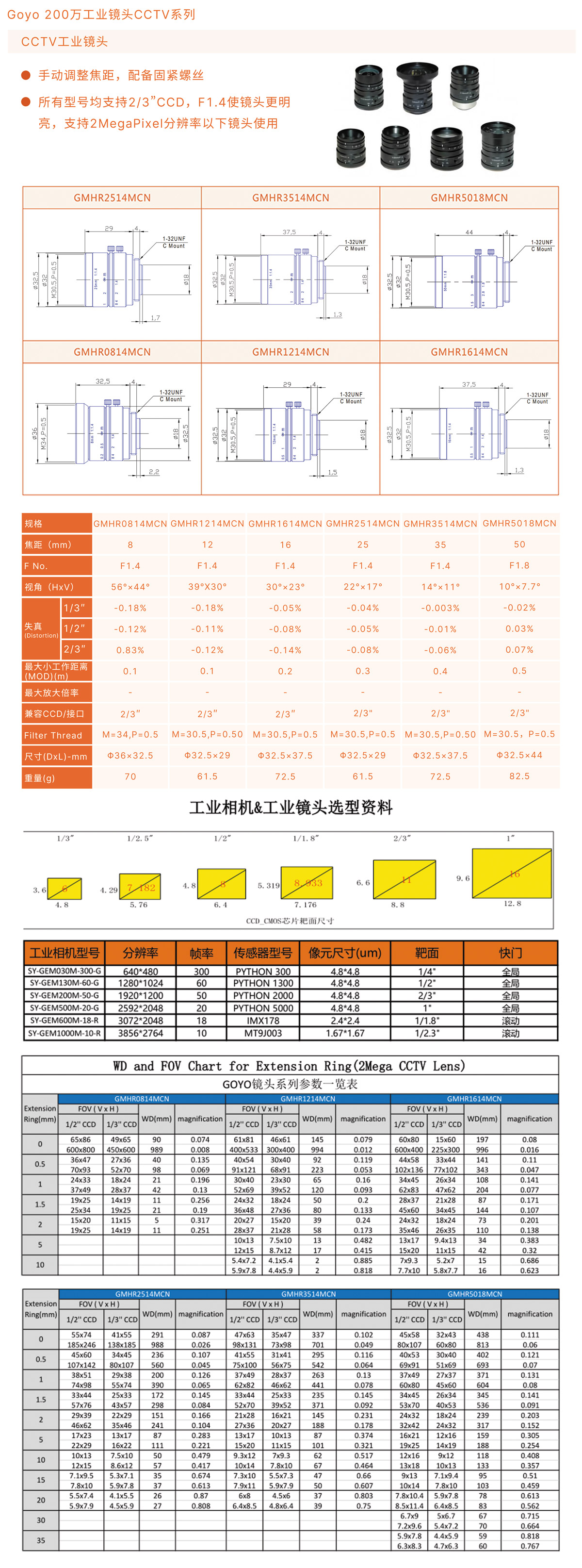 Goyo 200萬(wàn)工業(yè)鏡頭CCTV系列